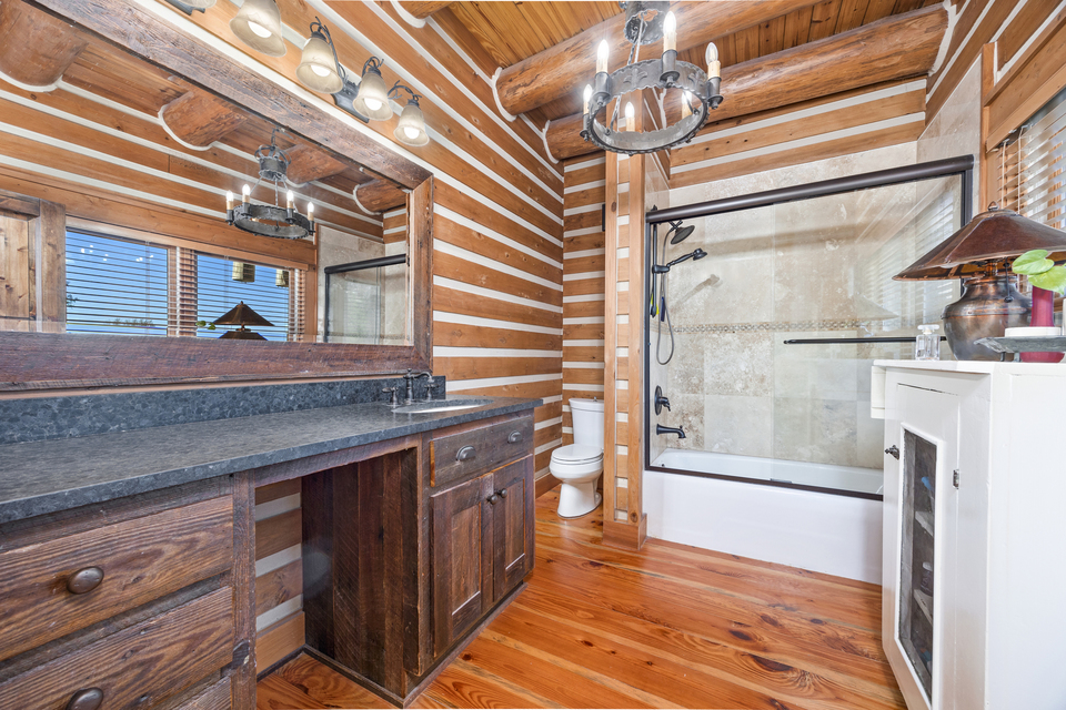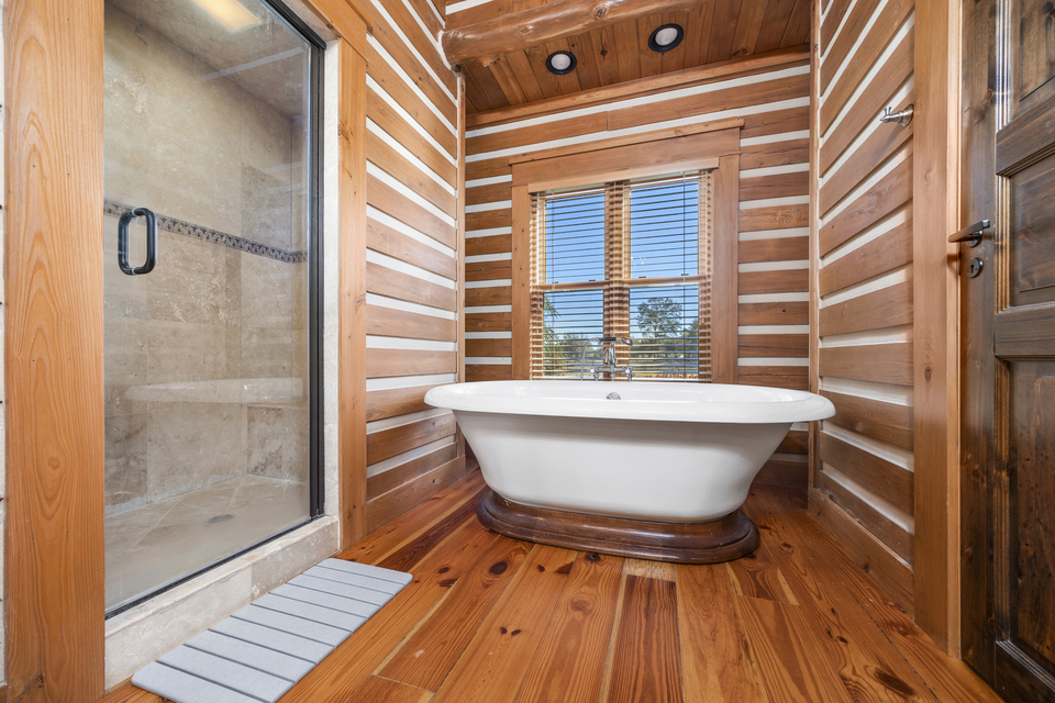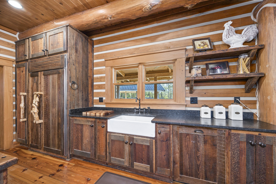 This riverfront property features an expansive, custom log home with luxury finishes, high end appliances and stunning views along the St Marys River. The home boasts 4,114 square feet of living area and another 3,913 square feet of covered porches and parking. The home was constructed in 2008 out of cypress and carries the accent of heart pine throughout the floors and ceilings. The floorplan features three bedrooms, three full bathrooms, a half bathroom as well as an expansive living room and loft. The living area features a large stone fireplace and the dining room features a stone fireplace as well. Both fireplaces are currently gas but they can both be converted to wood burning.