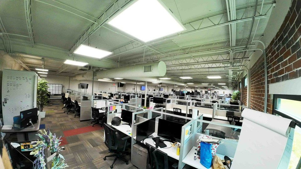 One Option consists of a large open bullpen, currently set up as a very attractive and modern call center. In addition, this area also features private offices, conference rooms, reception space, and a private entrance.