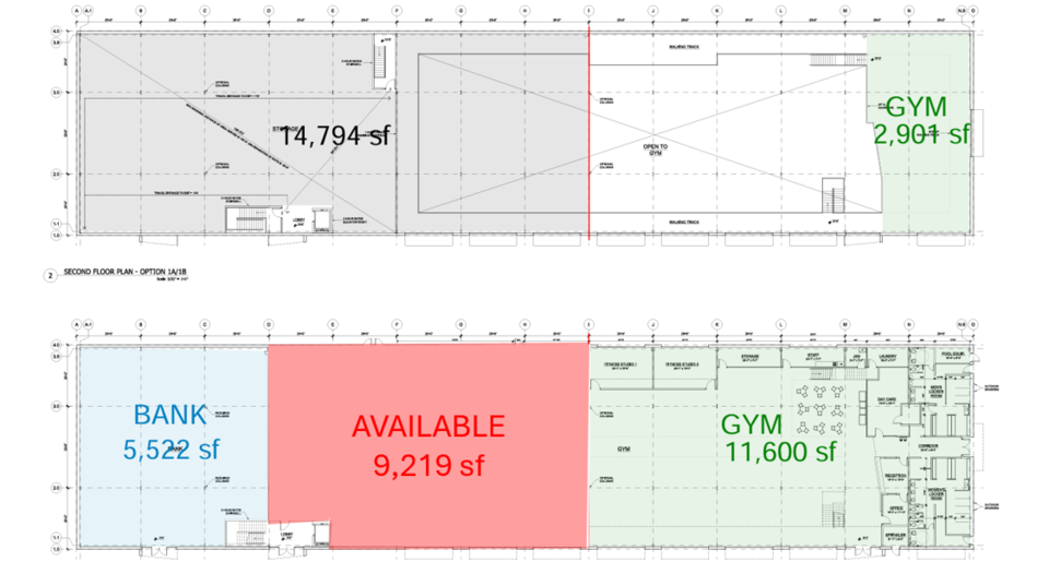 - Available Spaces: ±10,000 SF medical/office, ±12,000 SF gym concept