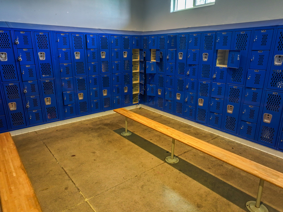 Adjacent to the court are multiple rooms currently used as a weight room, classrooms, and locker rooms, providing additional flexibility for a variety of activities.
