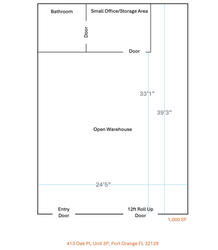 - Unit 4D: 1,000 SF Warehouse with a Small Office.