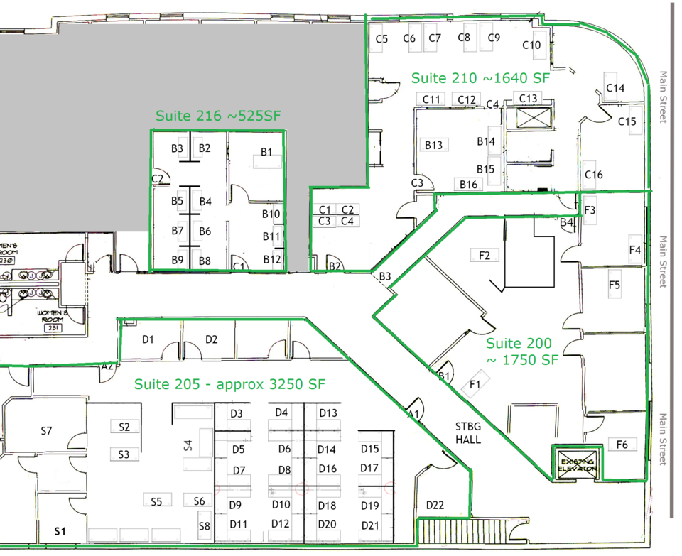 Recently Renovated Office Space in the Historic JJ Newberry Building. Single Suite, or 1,600 to 3,250 SF. Owner will to build-to-suit for and customize the larger space as small as 1,600SF. Completely built out in 2000 and fully updated in 2020 with new flooring and paint, these units feature elevator access, a common waiting area, private kitchenettes, exposed brick, and lots of natural light. The former office of a technology company, the units have access to high-speed internet, a fit-out server room with a backup generator, and a keycard security system. Rent a single unit, or combine units to meet your needs. Current availability is: 133SF, 1600 SF, and 3250 SF units.