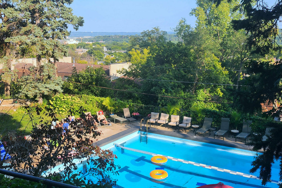 The University Club is located on prestigious Summit Avenue and is distinctively perched on a bluff atop Ramsey Hill in the historic Cathedral Hill neighborhood of Saint Paul, which is known for its tree-lined boulevards and its well-preserved Victorian architecture with many of the homes built in the late 19th and early 20th centuries. An architecturally diverse mix of historic homes which showcase Italianate, Queen Anne, and Richardsonian Romanesque styles, among others, gives the area a picturesque charm. The University Club is within walking distance to the Selby Avenue restaurant district, West 7th Street, Downtown Saint Paul, Grand Avenue, the Cathedral of Saint Paul, both the Governor's Mansion on Summit Ave as well as the James J. Hill House, a historic mansion that provides insights into the Gilded Age. This location affords a spectacular, unobstructed view of the downtown Saint Paul Skyline and the Mississippi River Valley.