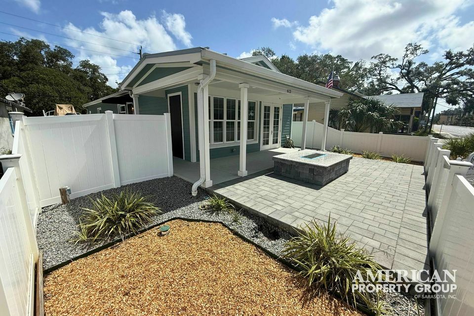- Patio has pavers and a gas fire pit.