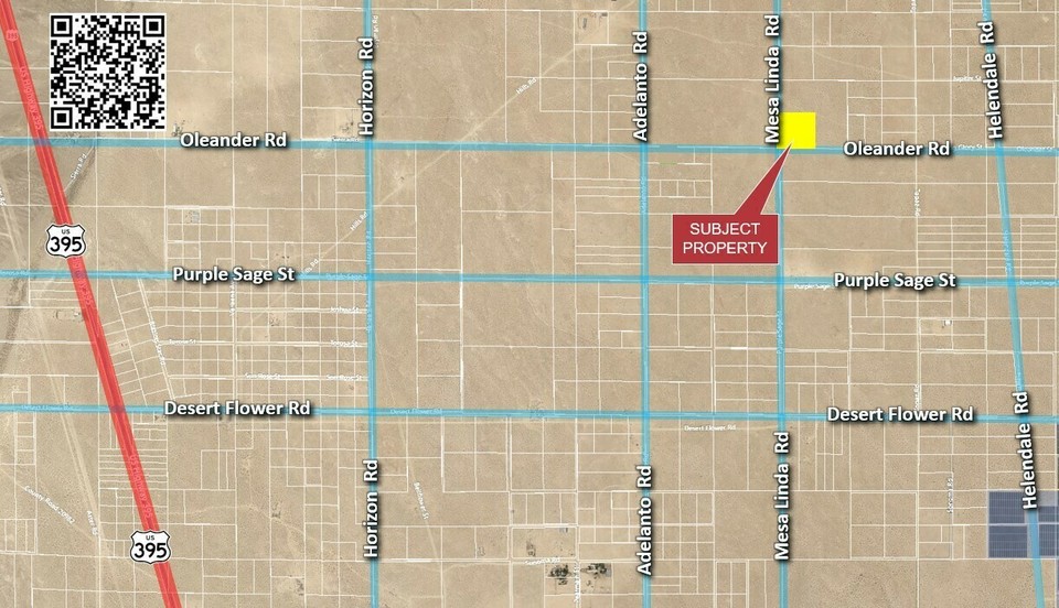 ±10 acres of unimproved residential land on Oleander St. in Adelanto; APN: 0460-103-12. Zoned Rural Living (RL-5) this lot resides under San Bernardino County’s jurisdiction and permits for the development of 1 dwelling unit per 5 acres. This location is also within a Qualified Opportunity Zone and eligible for potential tax benefits. This site is in proximity of the Southern California Logistics Airport. The Airport recently completed approximately 4MM square ft of expansion and is now home to major global leaders of industry such as Amazon, Boeing, GE Aviation, Kuerig Dr. Pepper, M&M/Mars, Newell Rubbermaid, and more. As an extension of the Inland Empire, the High Desert continues to grow with millions of square feet of planned industrial and tens of thousands of housing units under construction. Buyer to verify all information contained herein. Agent and their representatives are not responsible for the accuracy of these claims.