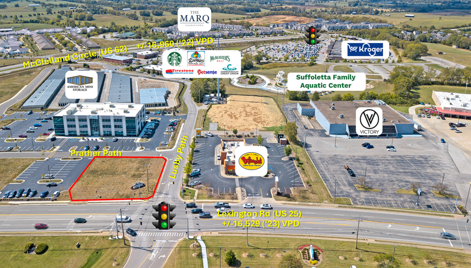 - Situated at the signalized intersection of Lexington Road and Lusby Path (combined traffic count of +/-33,489 VPD)