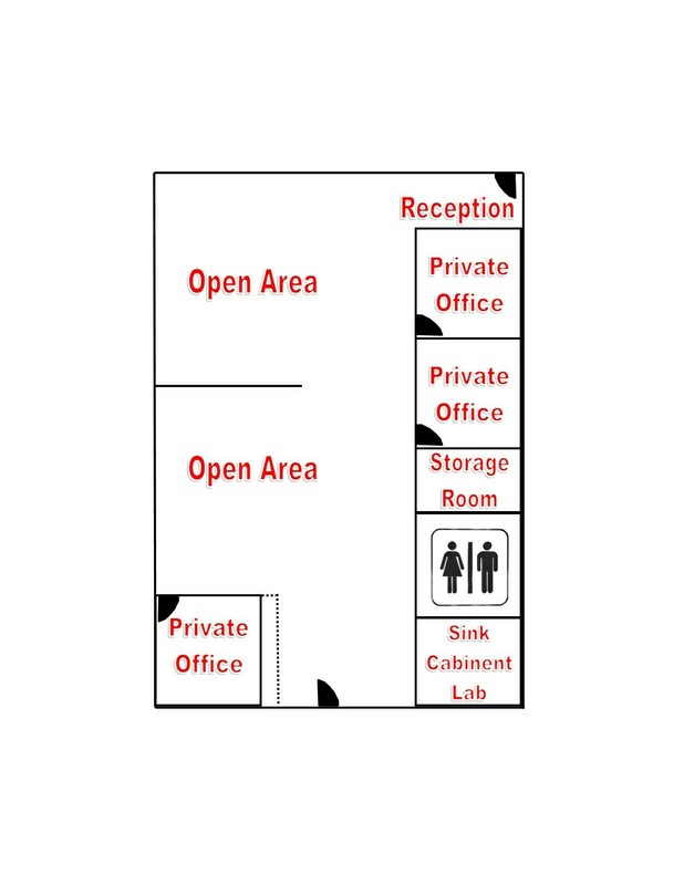 - (3) Private Offices, Reception Area, (2) Large Open Areas, Lab, Private Restroom