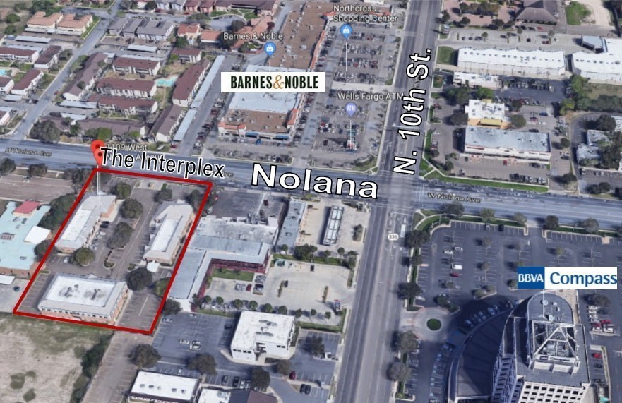 For Lease - The Interplex Professional Office Suites. Beautiful, serene campus setting nestled off of Nolana Ave., just west of N. 10th Street. Lush landscaping and mature trees adorn walkways and islands throughout. Restaurants and shopping within walking distance, including Barnes & Noble, Corner Bakery Cafe, Cowboy Chicken & other retail shops. Suites are move-in ready! 3 year lease preferred.