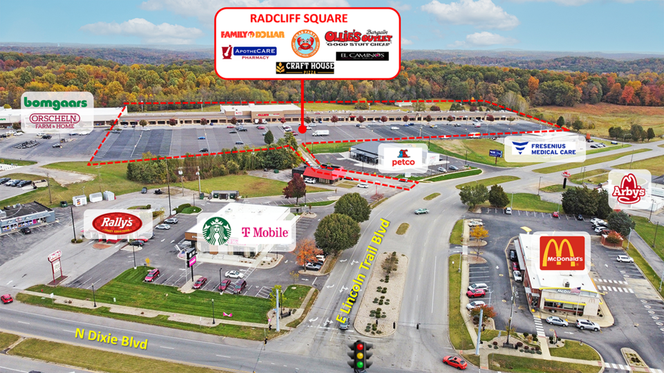 NAI Isaac is pleased to present leasing opportunities at Radcliff Square. The shopping center is +/-97,070 SF located in Radcliff, Kentucky. The center boasts national tenants including Ollie’s Bargain Outlet, Family Dollar and Fantastic Sam’s, as well as a number of regional tenants. Radcliff Square benefits from a stable demographic base driven by its close proximity to the nearby Fort Knox.