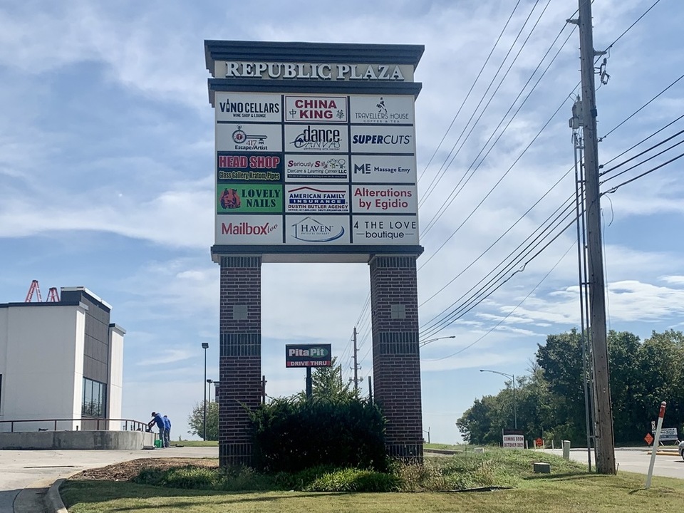 Republic Plaza shopping center, just west of the Price Cutter grocery store at Republic Rd & Kansas Expressway. Neighboring businesses include Price Cutter, Burger King, Arby's, Wendy's, Subway, Fieldhouse Sports center, Mercy Urgent Care, Chesterfield Family Center and many other national and local companies.
