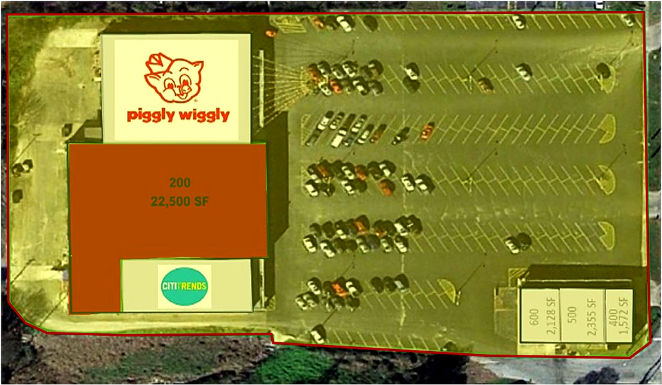 - Anchored by Piggly Wiggly, Citi Trends. Surrounding retailers include Dollar General, Dollar Tree, Auto Zone, CVS, Family Dollar.