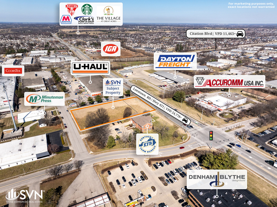 With approximately 24,778 vehicles per day, the site provides strong exposure along Leestown Rd. The property is flat and ready for development, making it ideal for a wide range of uses including medical offices, banks, professional services, daycares, and hotels.