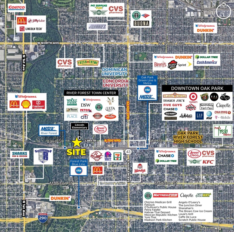 River Forest is a village in Cook County approximately 11 miles west of downtown Chicago and with close ties to the larger neighboring community of Oak Park. The city is home to two universities, Dominican and Concordia University, with a combined student population of approximately 8,200. This property is located one mile west of the downtown River Forest shopping district and is immediately across the street from Lincoln Elementary School. The location has close proximity to the Harlem/Lake Green Line "el" station, the River Forest Metra station, and the Oak Park Metra station, as well as easy access to major roadways including I-290, I-294, Illinois Route 43, and Illinois Route 64.