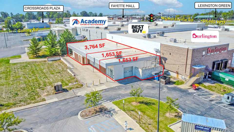 - Close proximity to regional draw +/-1.2M SF Fayette Mall, The Summit at Fritz Farm, Lexington Green, The Plaza at Fayette Mall, restaurants, banks, shopping and services