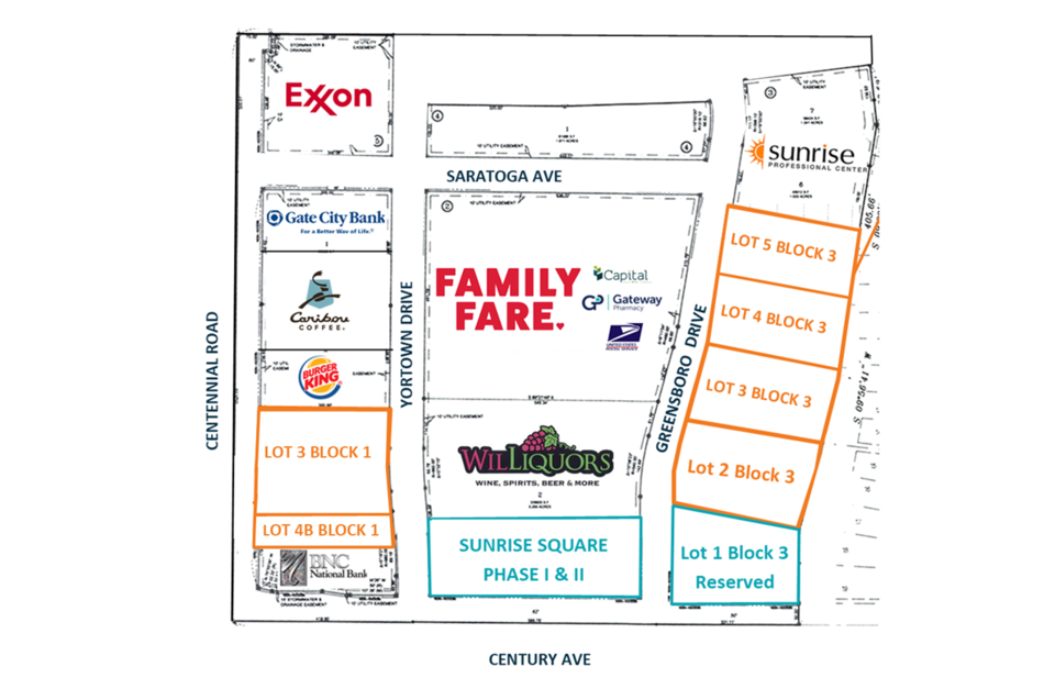 Commercial development land available in the East Bismarck growth area north of Exit 161. Anchors to this development include a national grocery store, a large local liquor store, professional services, restaurants, and banks along with a gas station-store.