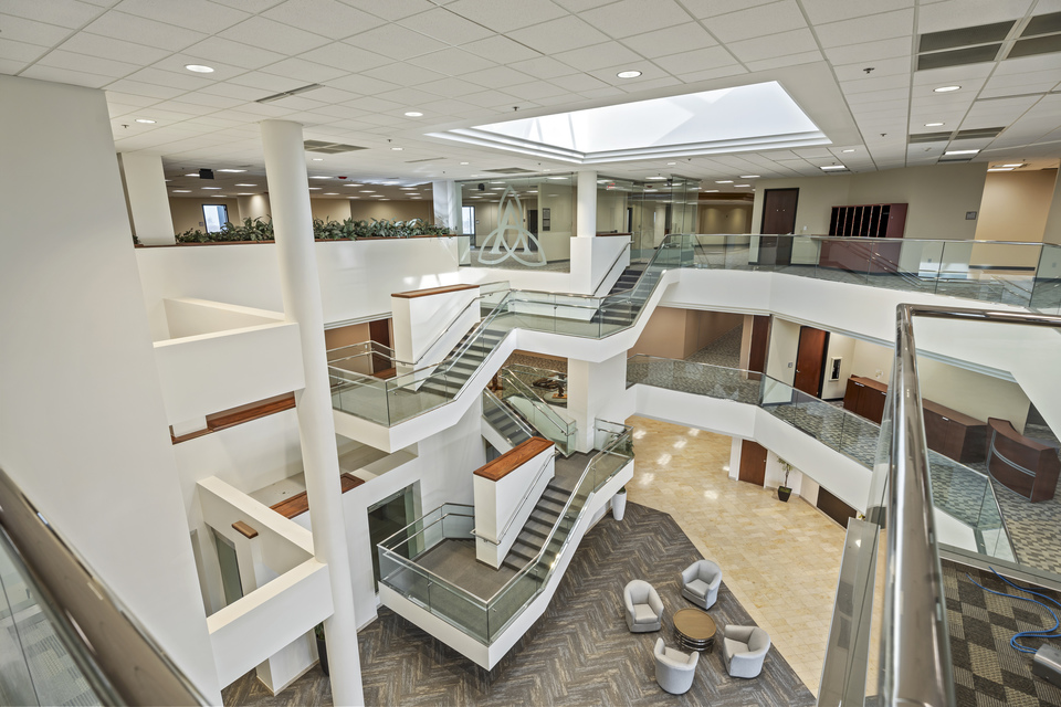 Three stories with open atrium