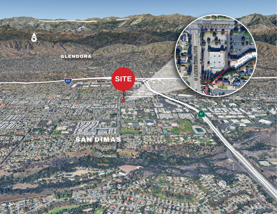 The subject consists of a 15,160 SF building built in 2001 and is situated on a 2.04-acre lot located on the SEC of Arrow Highway and Lone Hill Avenue (over 54,000 cars per day). The property is adjacent to and shares a parking lot with the Fitness Plaza, a 20,000 SF strip center. The property is also across the street from the San Dimas Plaza, a 200,000 SF community center anchored by Smart & Final Extra, Harbor Freight and TJ Maxx.