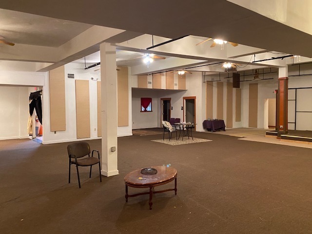 The building is remarkable, the 6,300 sf consists of a large main room in the middle, that is fully A/Cd, measurements coming. The front area consists of several rooms of offices, a kitchen, restrooms, and one somewhat larger room for conference or classroom. This front section is cooled by wall units.