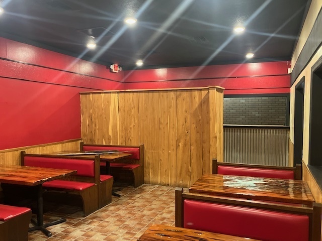 The extensive dining rooms are also turnkey and fully equipped. This includes very attractive real wood plank tables, chairs, booths, a hostess stand, and a salad bar.
