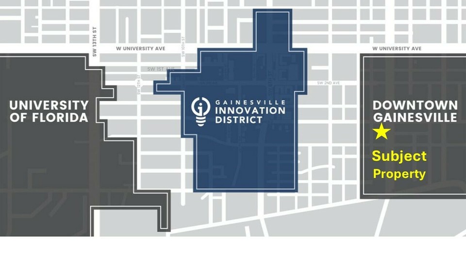 Bosshardt Realty Services is proud to exclusively offer this rare development opportunity on a hard corner in the heart of downtown Gainesville, Florida. This premier mixed-use development includes 212 feet of frontage along Main Street with two access points at S.E. 4th Place and S.E. 4th Ave. Spanning 1.41 acres, the site offers favorable D.T. zoning that permits up to 150 units per acre by right or up to 175 units per acre with a special use permit (SUP). All utilities are available on-site.