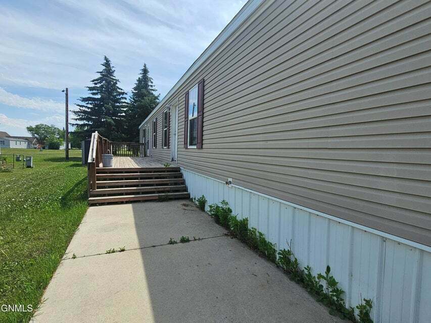 Beautiful updated 2015 manufactured home features 3 bed 2 bath split floor plan with a breakfast bar dividing the kitchen from living area and a built in desk space for a office laptop or phone. , This home has new flooring throughout and fresh paint. The Extra large deck allows for entertaining and the Primary bedroom hosts its own private bath.