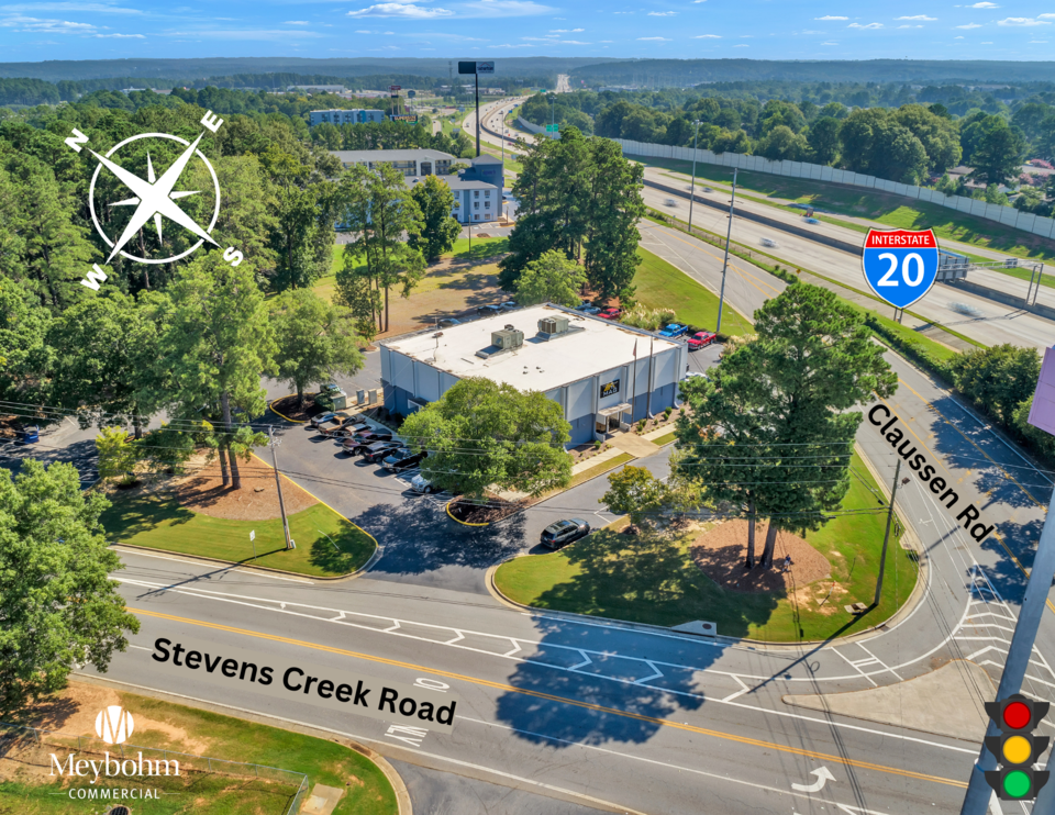 The building is located on Stevens Creek Road which is just off the I-20 Washington Road Exit, in the thriving Martinez area of Augusta GA. The property is visible from I-20 at the corner of Stevens Creek and Claussen Roads.