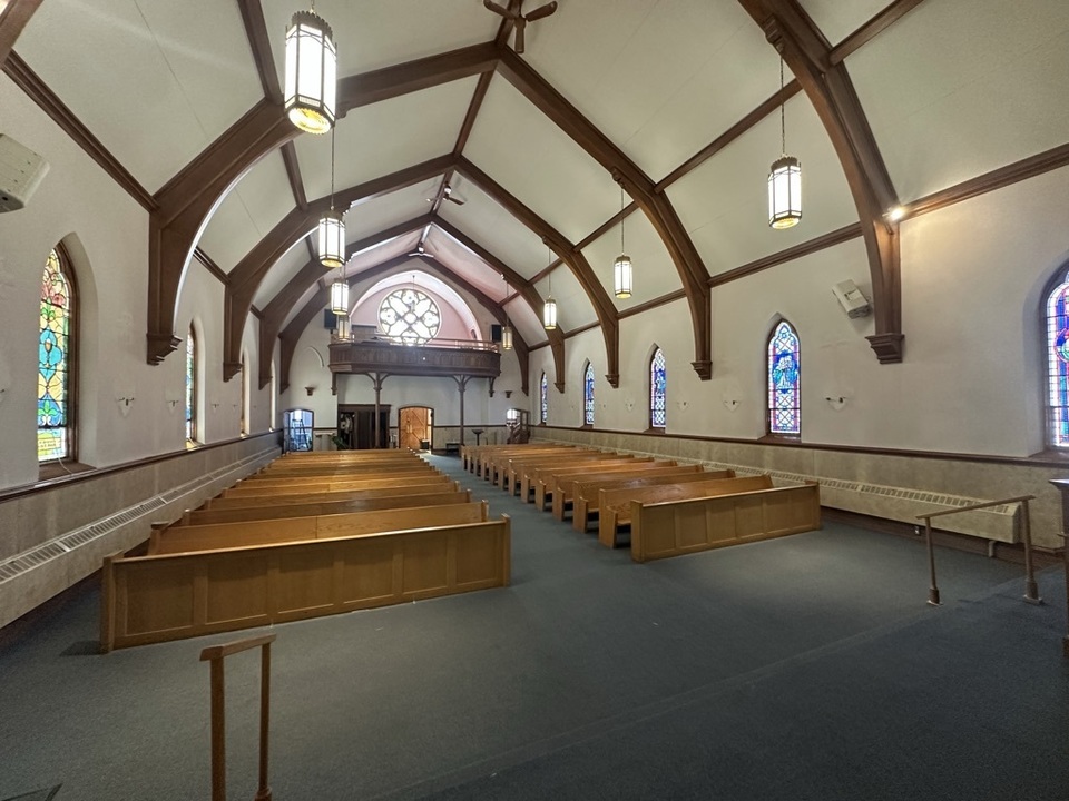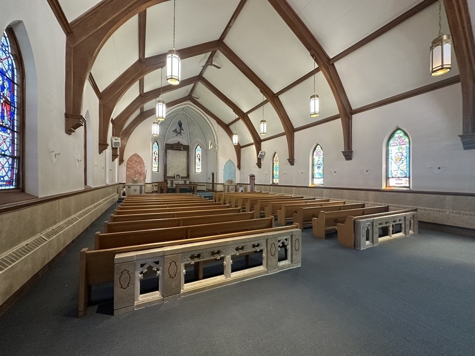 Formerly home to Saint Mary’s Roman Catholic Church, the property spans 0.36 acres and includes both the original brick church building and a parish hall. Together, the structures total over 5,200 square feet of space. The church features classic red brick construction, asphalt shingle roof, hot water baseboard heating, and a full basement with partial concrete flooring. The parish hall, built on a concrete slab, is equipped with a durable metal roof, updated windows, a spacious kitchen, large gathering space, two restrooms, and forced hot air and electric heating systems. Two paved parking lots with capacity for approximately 50 vehicles are included. Offered in as-is condition, this property provides ample space and flexibility for religious, commercial, or community-oriented redevelopment.