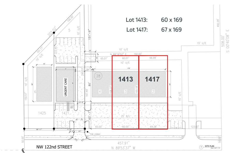 Two prime lots with 127 ft of frontage on NW 122nd St. Ideally suited for medical or dental office, it comes complete with a brand-new parking lot. Enjoy the convenience of easy access to Broadway Extension and capitalize on the nearby Chisolm Creek development.