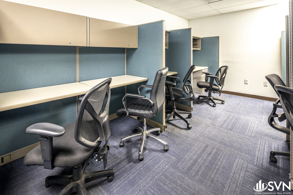 The first building is +/- 7,980 square feet and features a functional blend of office and warehouse space. The office portion includes multiple large private offices, a conference room, a lobby, and a break room with kitchenette. The attached warehouse is clear span with 17 ft. peak clear height and two grade-level drive-in doors, providing flexibility for a range of light industrial, service, or storage uses.