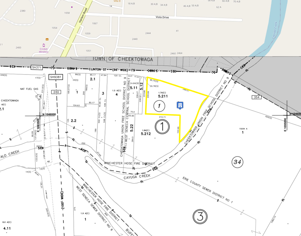 Located 1/8 mile East of Harlem Rd. on the south side of Clinton St. Minutes off I-190 NYS Thruway Clinton St. On/Off Ramps. The property is close to various shopping centers and restaurants, providing convenient options for dining and retail. The area offers access to local parks and recreational facilities, making it a pleasant environment for both work and leisure. West Seneca is a growing commercial district with increasing traffic, making it a promising location for business investments