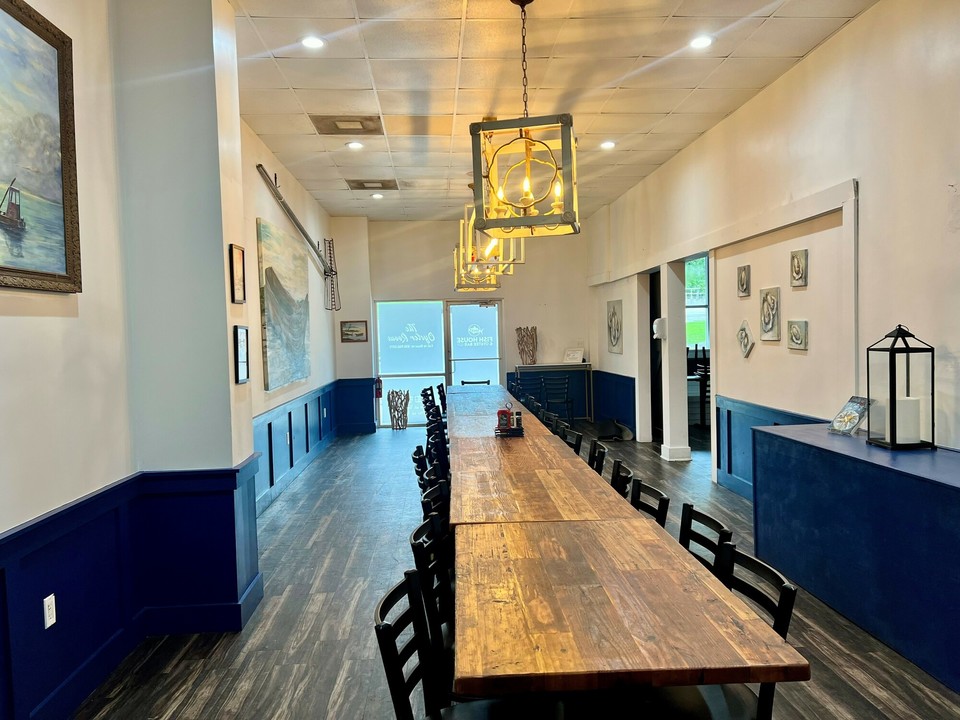 - Fully equipped kitchen: hood, grease trap, walk-in