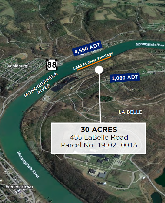 Nestled in the industrial region of La Belle, this 30-acre industrial site presents a strategic investment opportunity in Fayette County, PA. Located just 30 minutes from Pittsburgh, the property offers easy access to major transportation routes, including nearby I-70 and Route 40. Situated near the Monongahela River, the area provides advantageous logistical options for industrial investors. In addition to its prime industrial location, the property is surrounded by attractions such as the historic Greene County Courthouse and the breathtaking Laurel Caverns, offering recreational options for employees and visitors. La Belle's strong economic position and business-friendly community make it an ideal setting for industrial development.