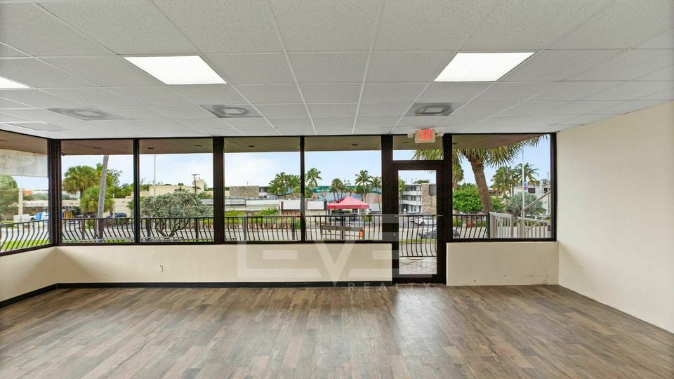 This unique two-story property is prominently located on the corner of Federal Highway, within a bustling retail strip center that offers ample parking. With hundreds of daily visitors to the plaza and over 50,000 vehicles passing by each day, your space will enjoy exceptional visibility. The building features panoramic hurricane impact windows with a spacious balcony overlooking Federal Highway, making it an ideal location for attracting attention and foot traffic.
