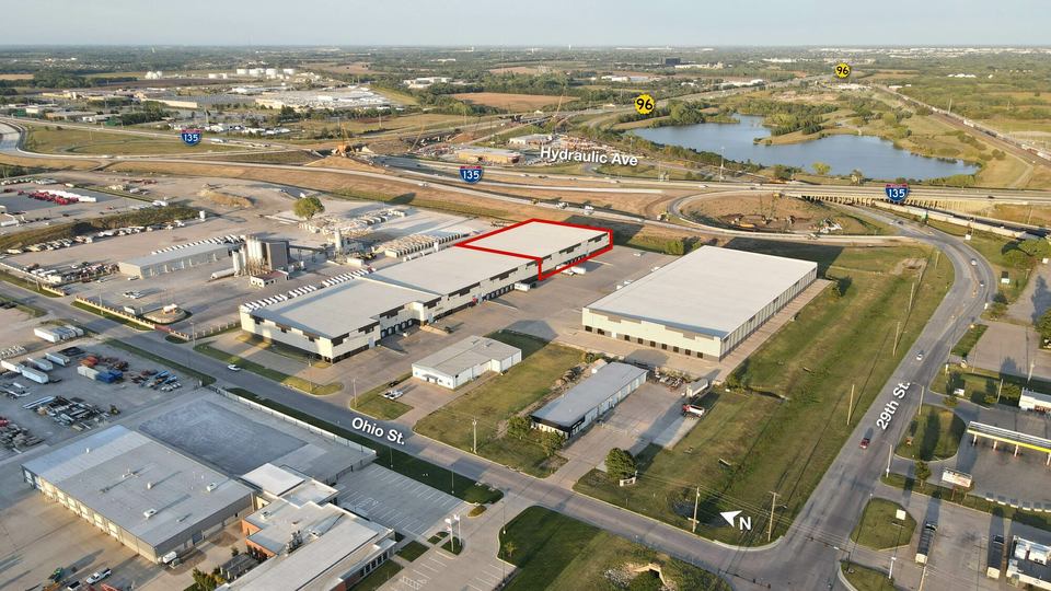Class A industrial warehouse space for lease in North Wichita. 54,000 SF space available, featuring concrete tilt-up construction, 30' ceiling height, 1 grade level overhead door, 8 dock-high doors, and ESFR sprinkler systems. Great location with excellent visibility and immediate access to I-135.