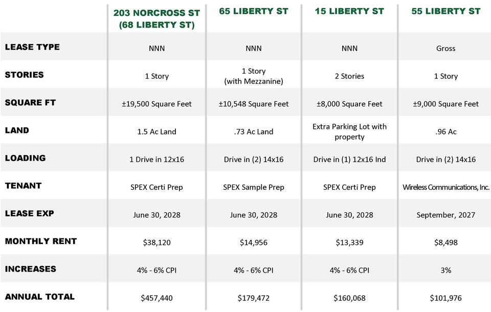 - 203 Norcross Ave (68 Liberty Street) is a ±19,500 SF building with one drive in 12x16