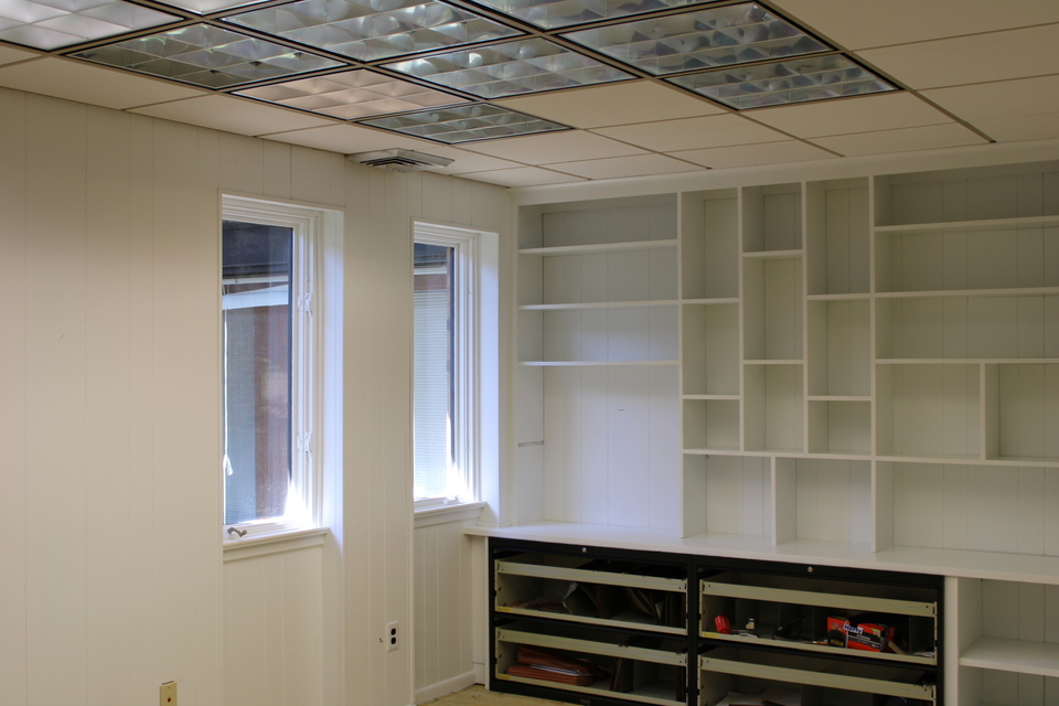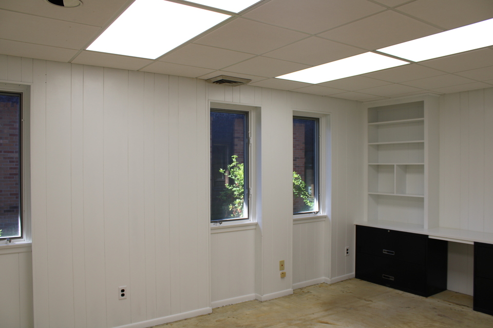 The available suite has been updated with fresh paint and lighting, and the floor is ready for new flooring selected by the tenant.