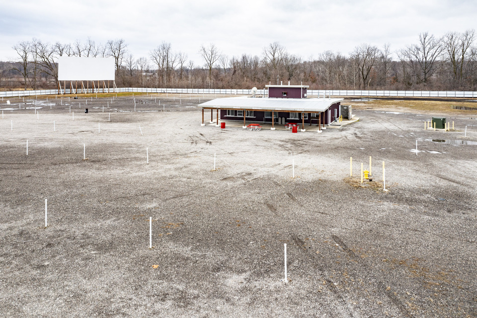 The property features two existing movie screens, on-site utilities, and a 4,448 sq. ft. concession/restroom building with bathroom facilities already in place—providing the essential infrastructure for continued operation as a drive-in theatre or redevelopment to suit your vision.