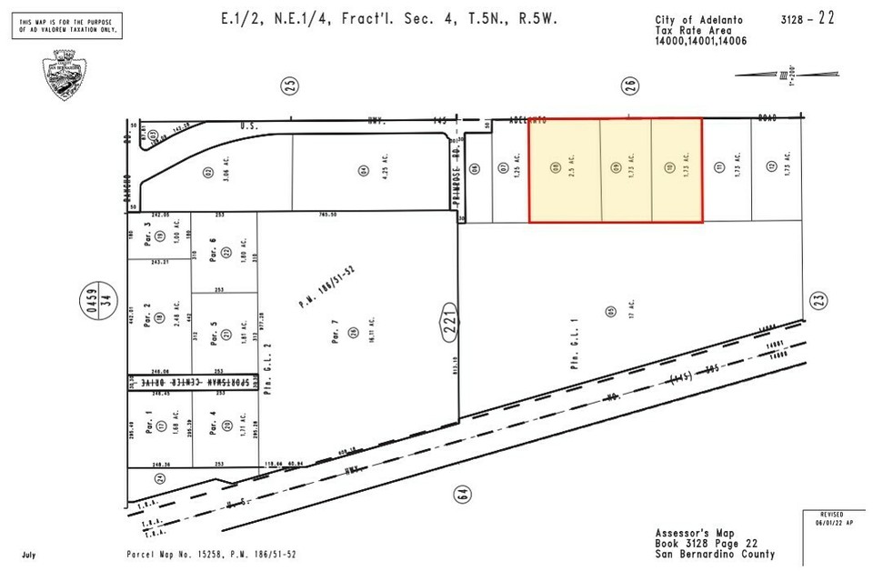 ±5.94 acres of unimproved commercial land for sale on Adelanto Rd in Adelanto, APNs: 3128-221-08, 09, 10. Zoned Mixed Use (MU) these lots allow for a blend of commercial and multifamily development, permitting 12-18 dwelling units per acre. Water, Sewer, Power, are at site with 665 ft of frontage on Adelanto Rd. Fantastic exposure to Highway 395 with approximately 22,000 ADTs with immediate proximity to the Adelanto Plaza & Event Center. The Event Center hosts outdoor concerts, festivals, car shows, and corporate events throughout the year. This site is also in proximity to support the expansion of the Southern California Logistics Airport (SCLA). Having undergone a major expansion of over 3MM sf, SCLA is home to such tenants as Amazon, Boeing, M&M/Mars, Keurig/Dr. Pepper, and Newell Rubbermaid. Buyer to verify all information contained herein. Agent and their representatives are not responsible for the accuracy of these claims..