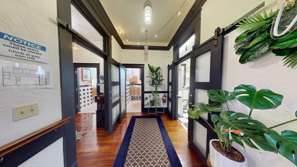 Built in 1901 and fully restored in 2020, this ±5,670 SF two-story brick building sits on a 0.07-acre parcel in the middle of Sanford’s thriving Historic District. The ground floor consists of three individual retail suites with prominent frontage along S Park Avenue, each designed for boutique, gallery, or café use. The second floor offers upgraded office space featuring refinished hardwood floors, period lighting fixtures, and exposed architectural details that preserve the property’s original charm while supporting modern professional use.