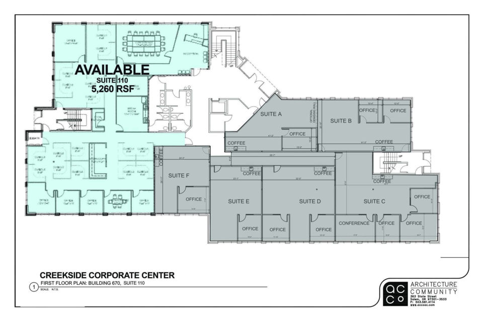 Creekside Corporate Center is located in the City of Salem, the State Capital of Oregon with the 2nd largest MSA. Conveniently situated between State and Mission Streets just one-half mile from Interstate 5. Surrounding tenants include: HDR Engineering, Kuenzi & Co, Aldrich Advisors and many more.