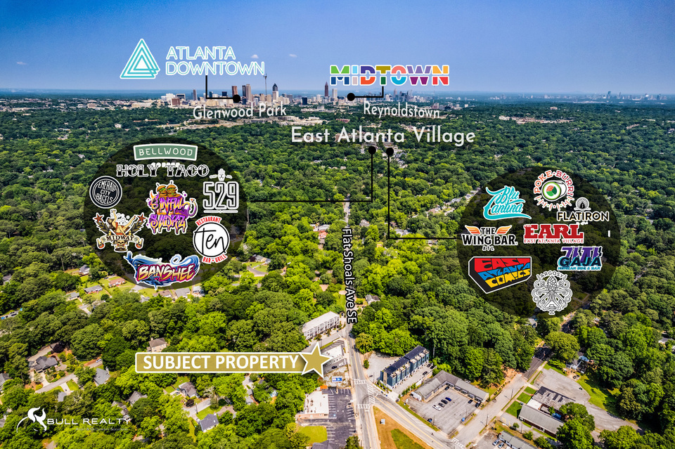- Less than a mile from East Atlanta Village, Moreland Ave and I-20 exit Flat Shoals Road