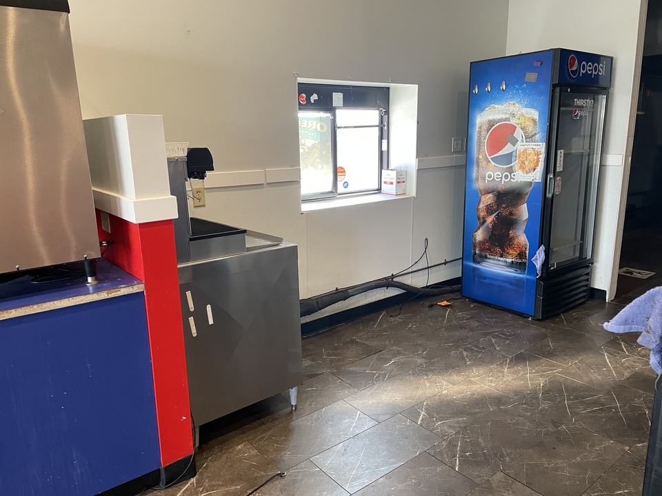 - Hood, coolers/freezers, three compartment sink, and fryers remain in kitchen