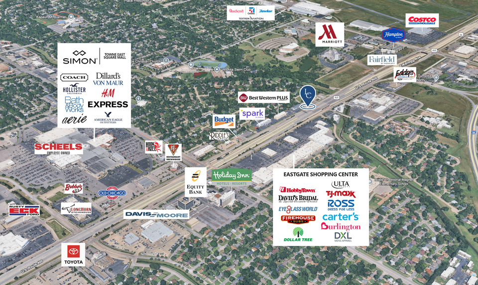 Located near Towne East Square, Beech/Cessna/Textron on Webb Road, and other major employers and retail anchors, this site is ideal for businesses seeking visibility and accessibility in Wichita's thriving southeast quadrant.