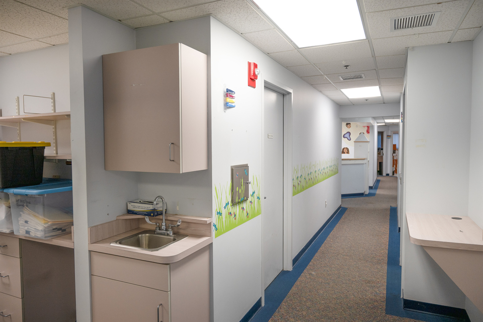 - Several exam rooms, offices, reception desk, waiting area, and lab space