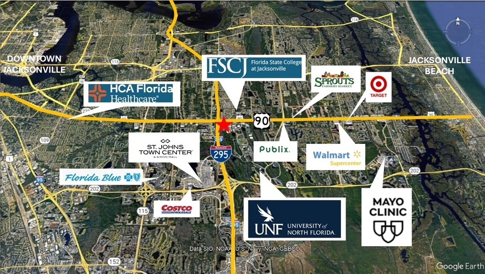 The Central Parkway corridor is a thriving business hub surrounded by a strong mix of medical, professional office, and technology users, as well as premier retail and dining options. Nearby landmarks include The University of North Florida, St. Johns Town Center, and major employers such as Mayo Clinic and Bank of America.