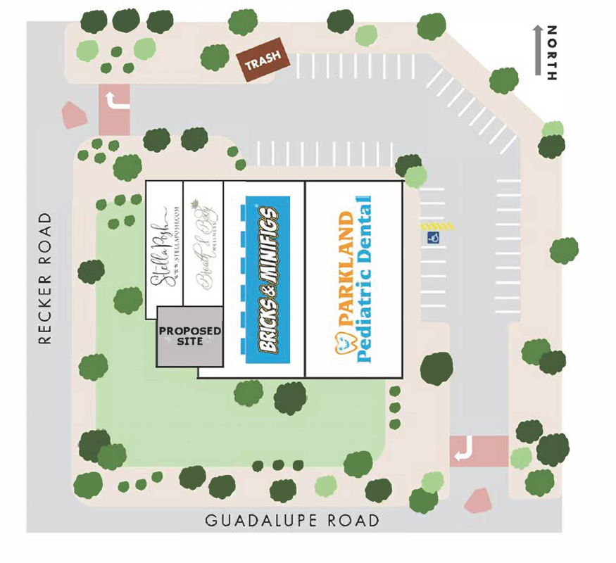 MOBILE VENDING SPACE OR BUILD TO SUIT - General Retail or Quick Service Concept in this 100% occupied neighborhood center in the corner intersection of Guadalupe Road & Recker Road. We have a coffee shop already in the complex, but there are no exclusions on anything. A food concept will have no competition(other than the neighboring coffee shop) in a one-mile radius and 4,800 households all to themselves! Join other tenants that provide Dental, a Pilates studio gym, Jewelry, and a Children's Lego store.