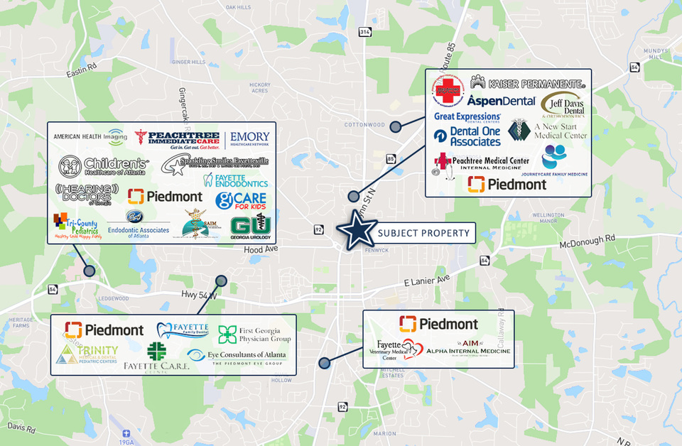 - Benefits from high patient demand, excellent visibility, and convenient access to Highway 54 and GA-85