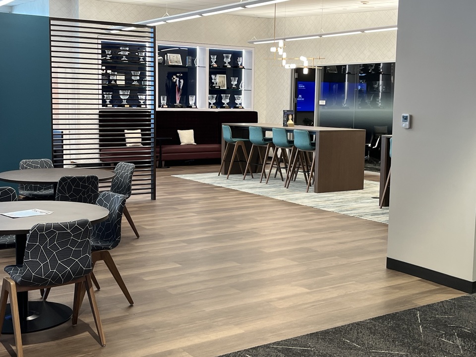 Eight huddle rooms, two medium conference rooms and one large conference room per floor