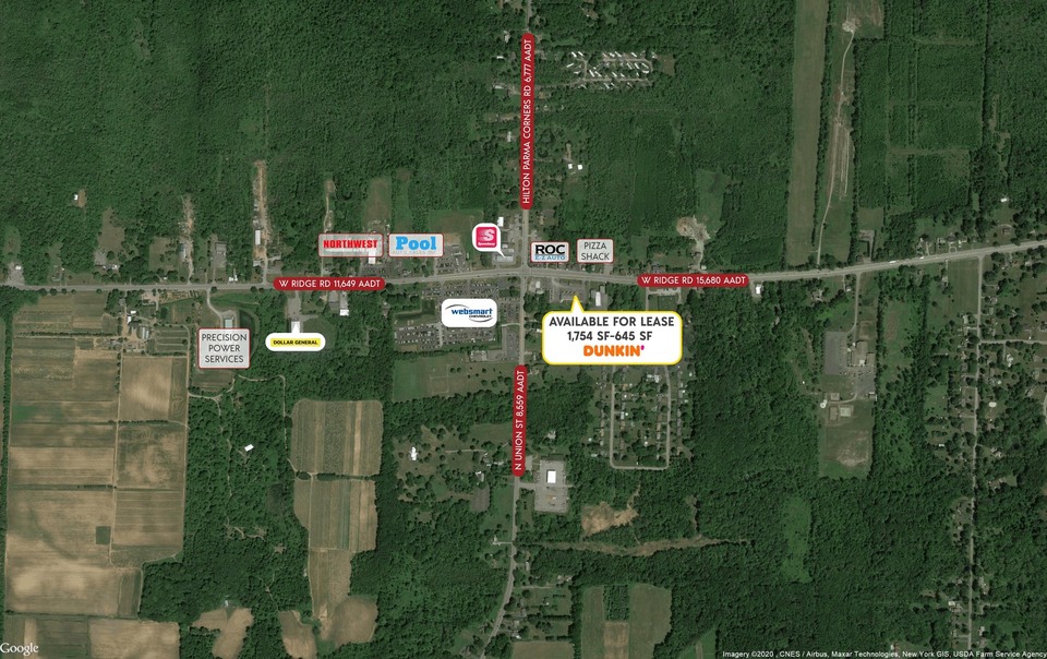 This property is located one off of a signalized intersection at Route 259 & Route 104, in Spencerport, NY, a suburb on the west side of the Rochester, NY MSA. The intersection is 1.5 miles north of the Village of Spencerport. Traffic count on Route 104 is 13,154 AADT. Parma Place is almost fully leased, with Dunkin' Donuts anchoring the building.