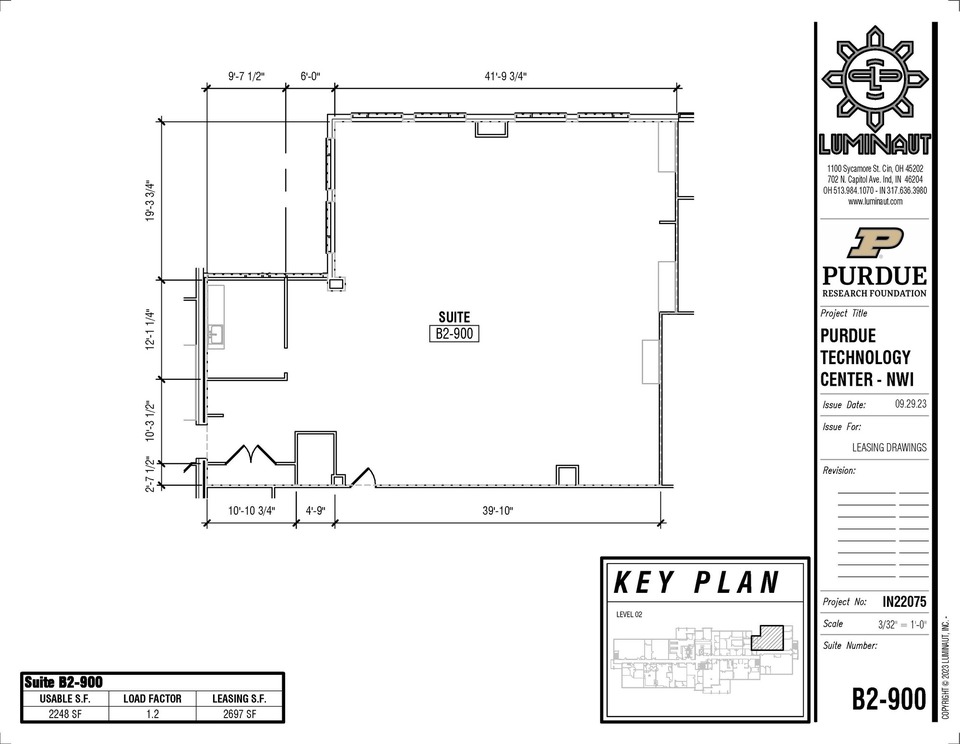 The Purdue Technology Center is a state-of-the-art full-service office building and business resource center with great amenities. The center has available offices, built out lab space and even month-to-month coworking space. Some of the amenities include full-service receptionist, mailroom, copy machine, kitchen with free coffee, outdoor picnic area with gas grill, 3 conference rooms available by reservation, and building security cameras. Four available suites on 2nd floor: A2-100, A2-204, A2-400B and B2-950. Office space is $25.00/Rentable SF and lab space which has venting, gas, water lines and is $38.09/Rentable SF. Fiber Internet connectivity and VoIP phone service is available. Build out allowance is $55.00/Usable SF. Common area load factor 1.2%.